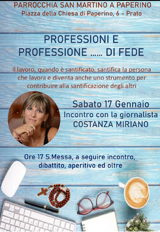 Sabato 17 Gennaio presso la Parrocchia di San Martino a Paperino, dopo la S. Messa delle ore 17,00 si č tenuto l'Aperifede al quale ha partecipato la giornalista Costanza Miriano.